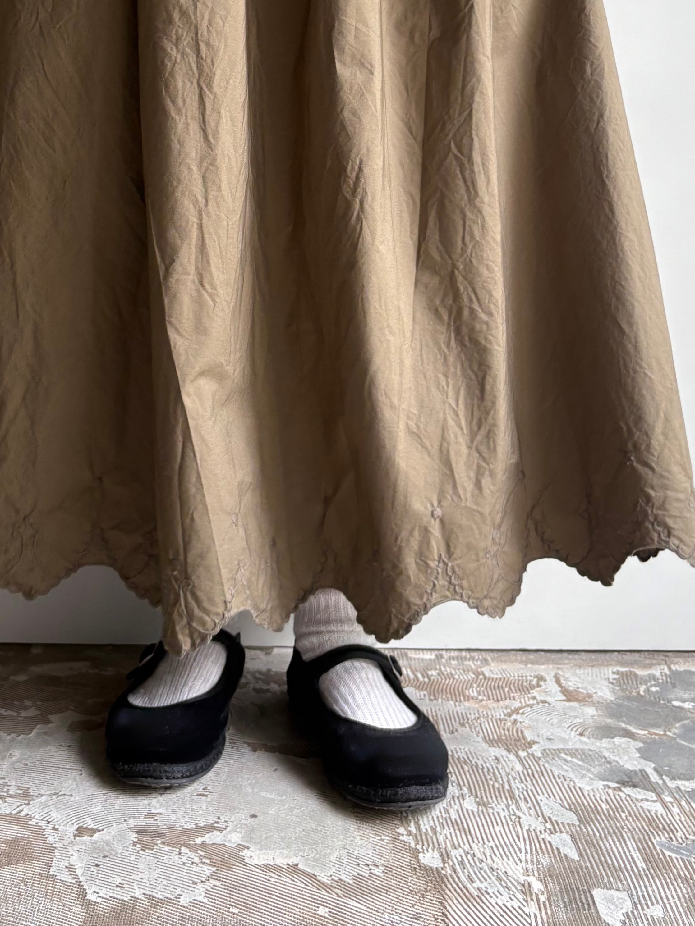 毎シーズンスカラップの柄をかえつくられているスカラップギャザースカート。