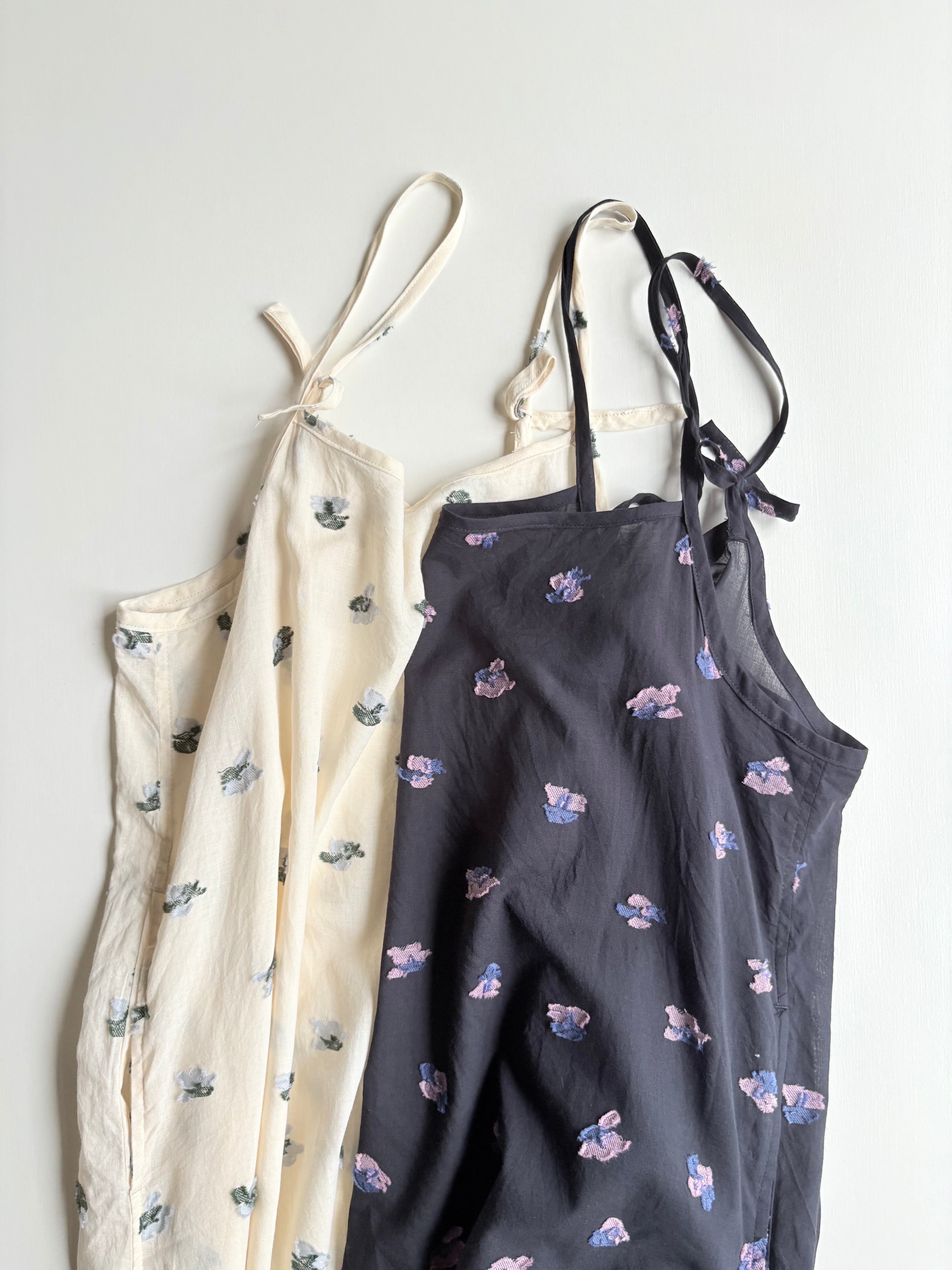 フラワーモチーフのカットジャガード生地を使用したキャミソールワンピース。