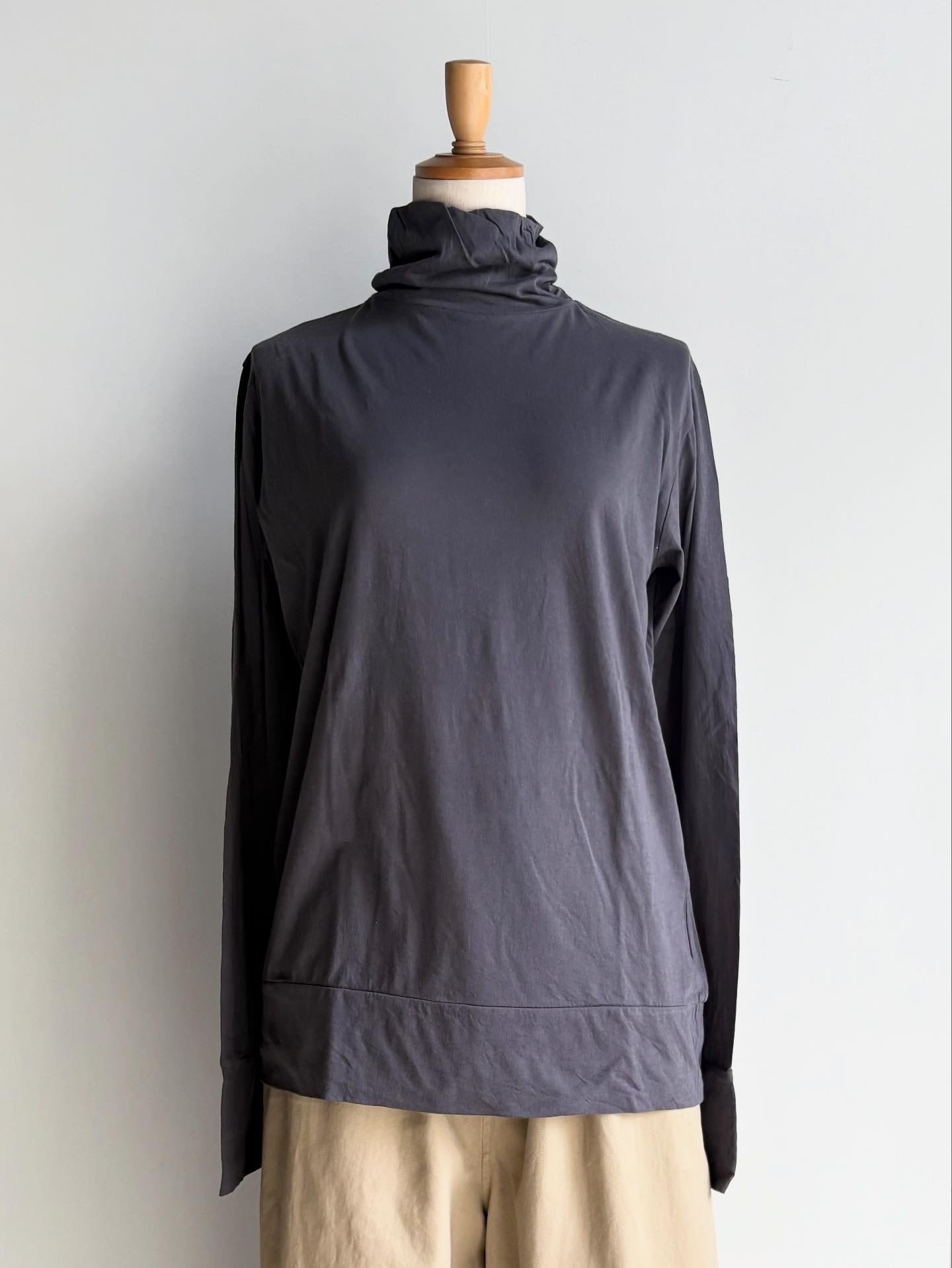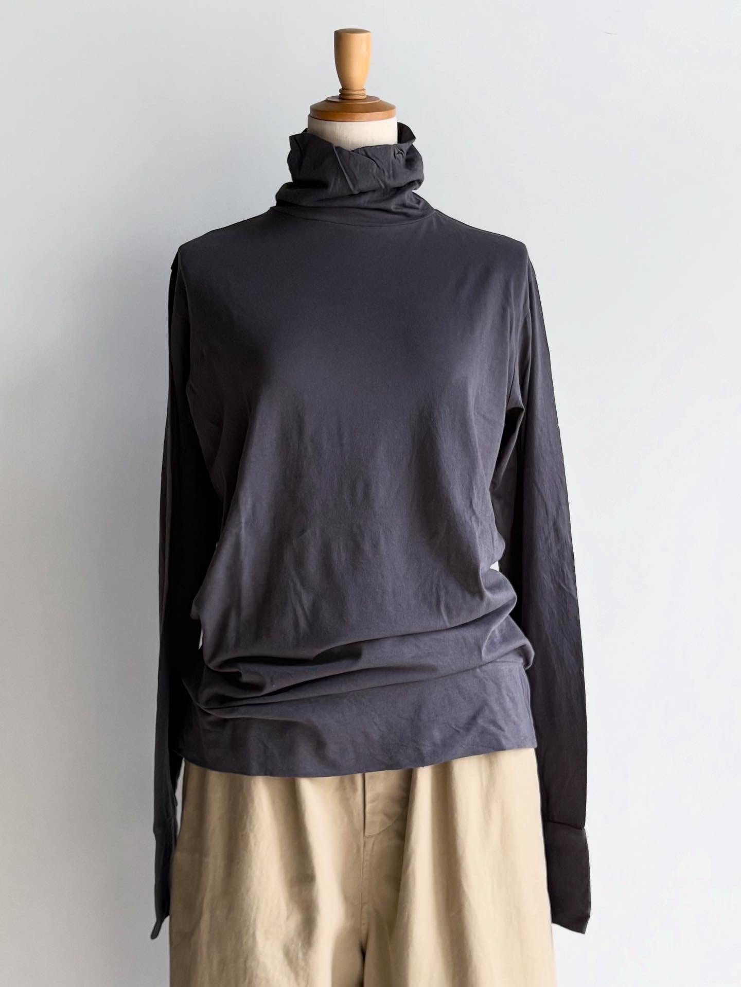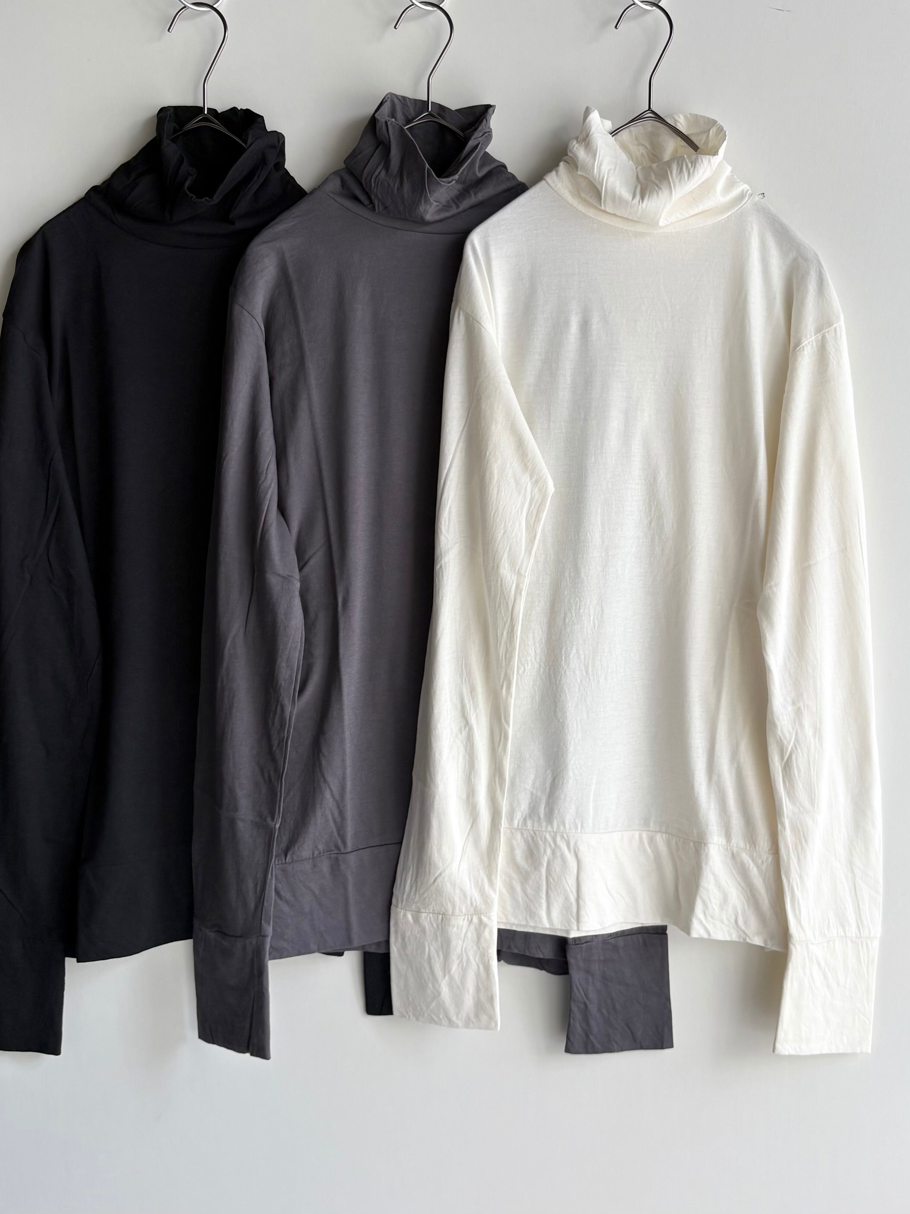 薄くてやわらかなコットン素材のタートルネックカットソー。