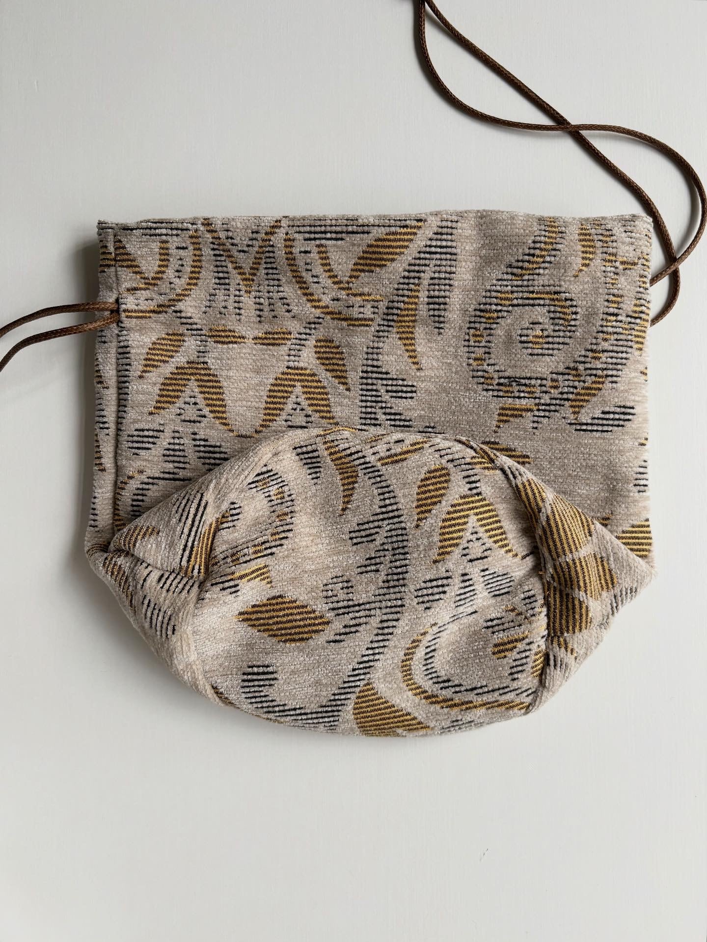 ペルシャ絨毯の大胆で美しいデザインを取り入れた巾着バッグ。