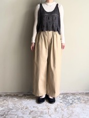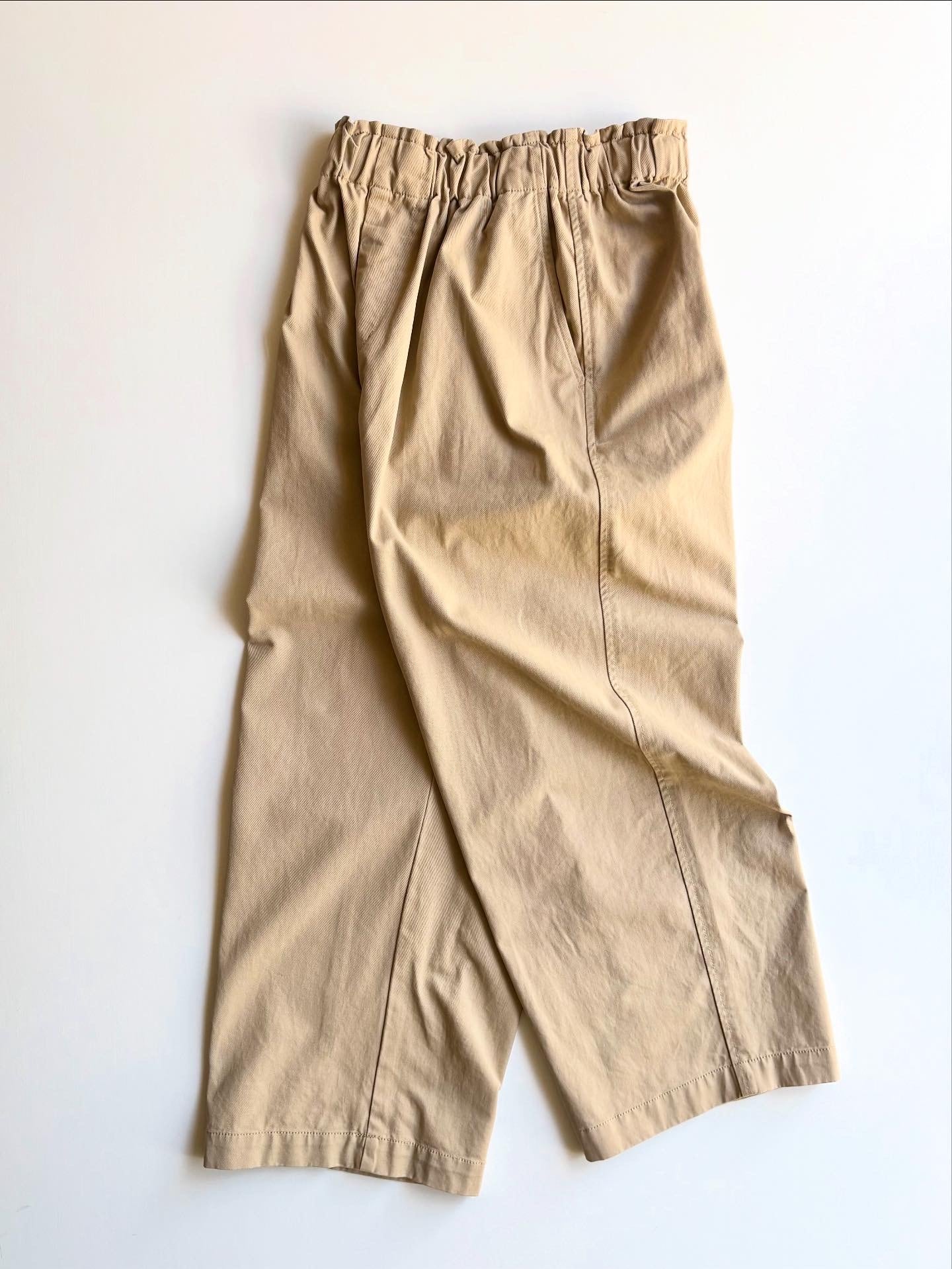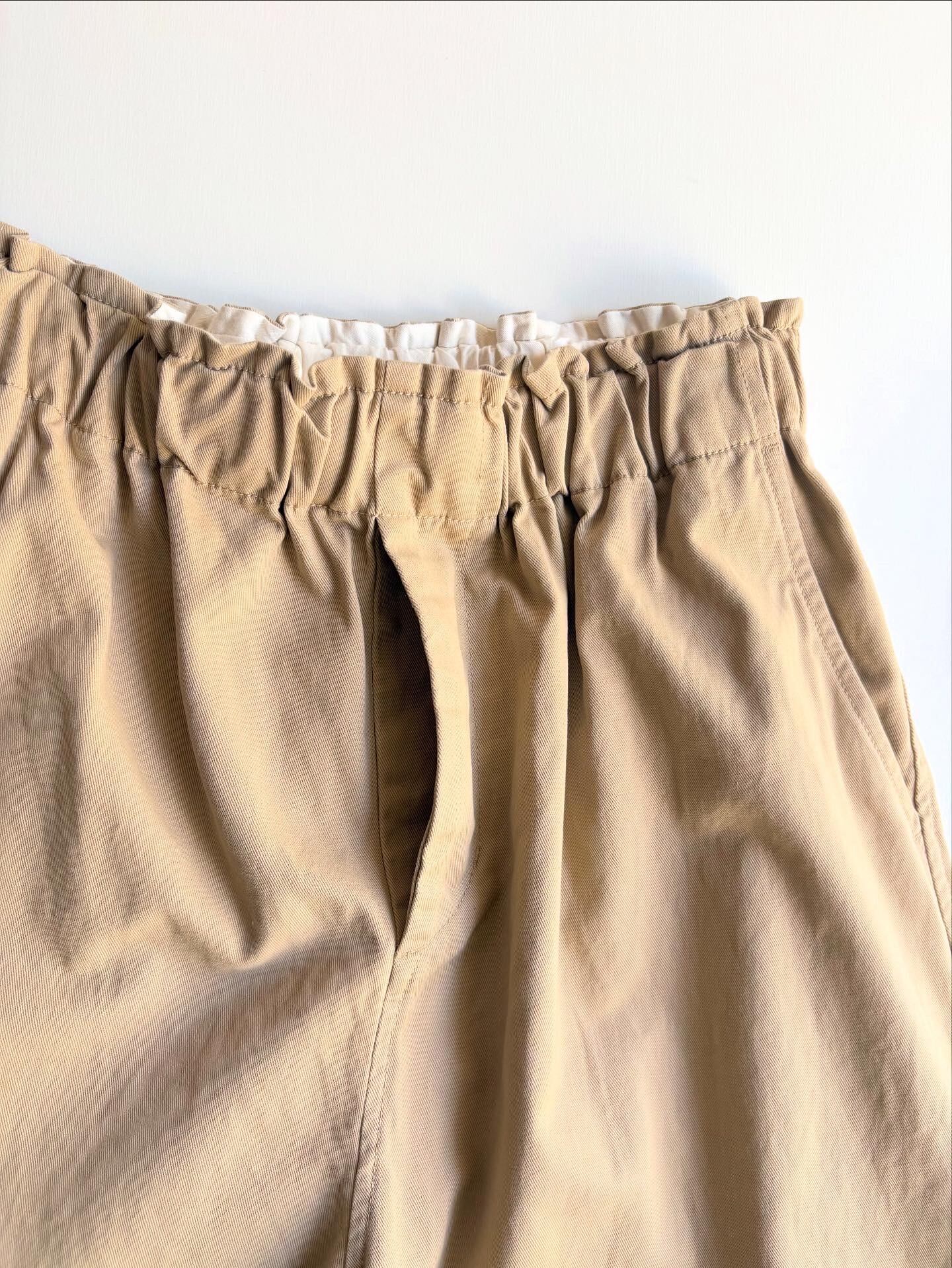 素材にはシーズンレスに使えるコットンチノ生地を使用、ストレスフリーで穿くことが出来るゴムウエストも魅力です。