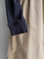 衿ぐり、裾、袖口は切りっぱなしのデザインで、袖口は2枚仕立てになっています。