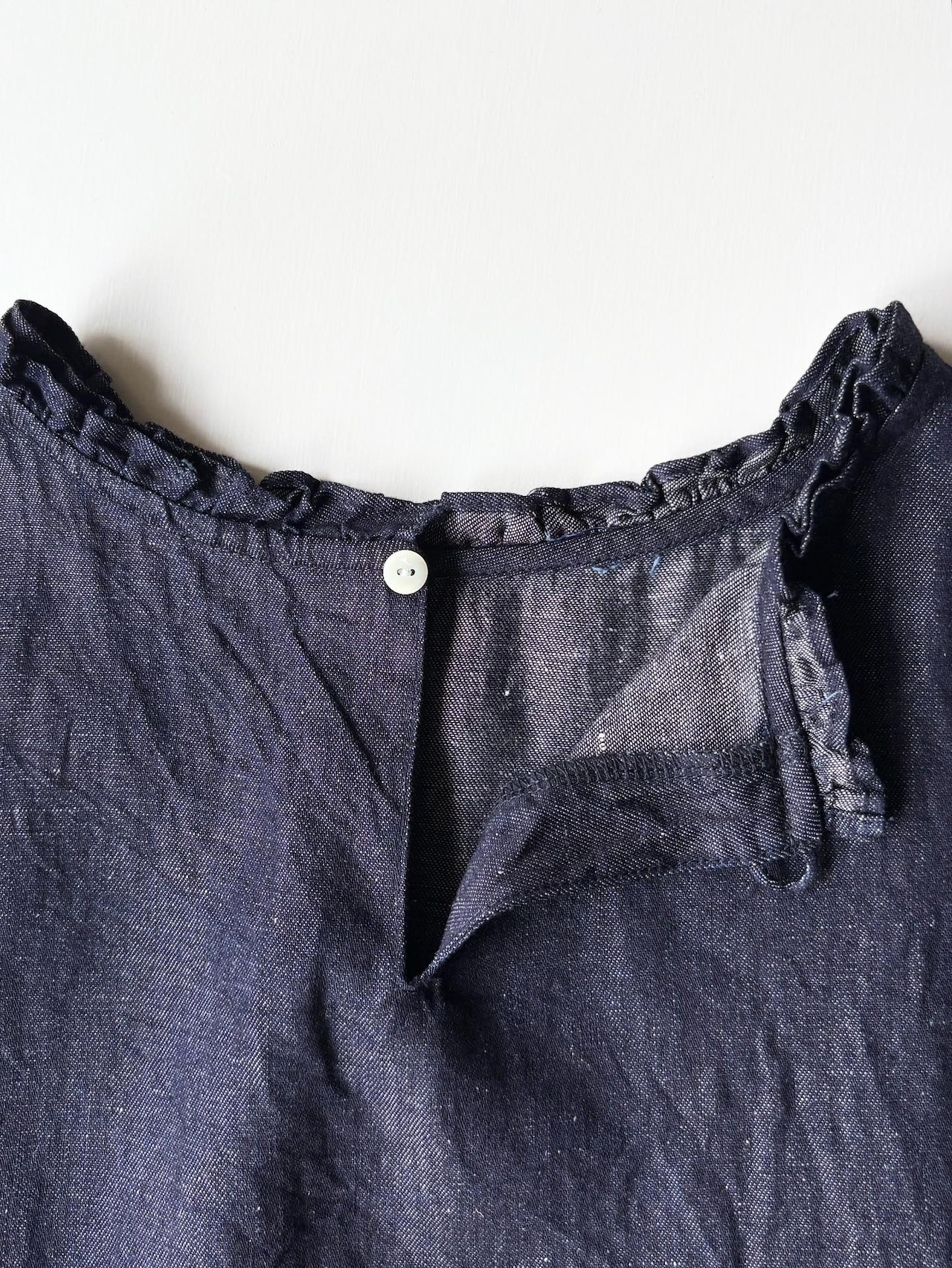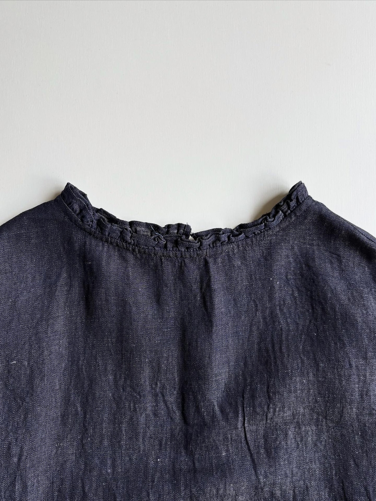 首元には二重になった小さなフリルがあしらわれ、カジュアルな中にも可愛らしいさをプラスしたデザインに。