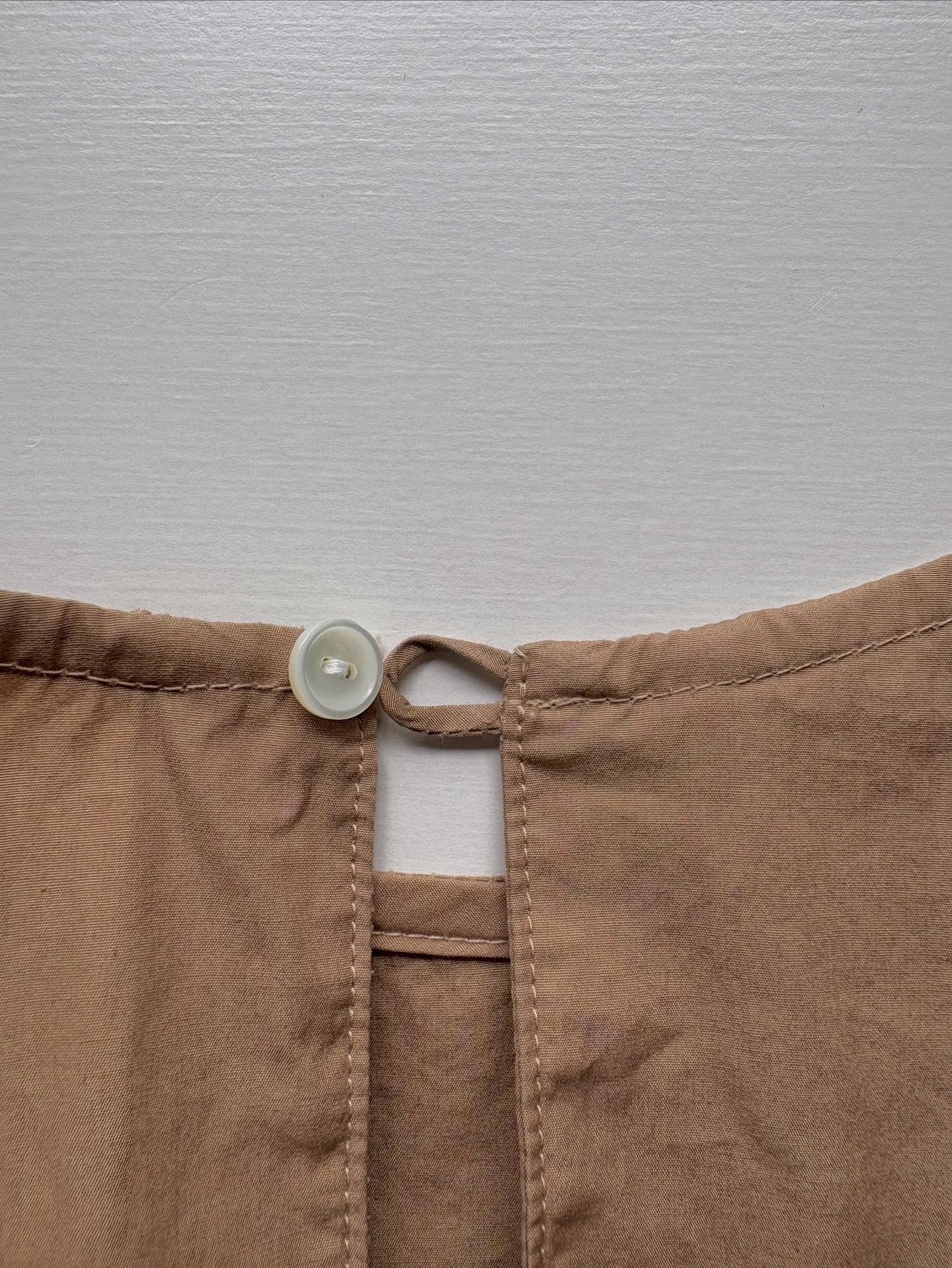 張りのあるタイプライター生地を使用し、たっぷりと生地を使っていても軽さのある仕上がりに。