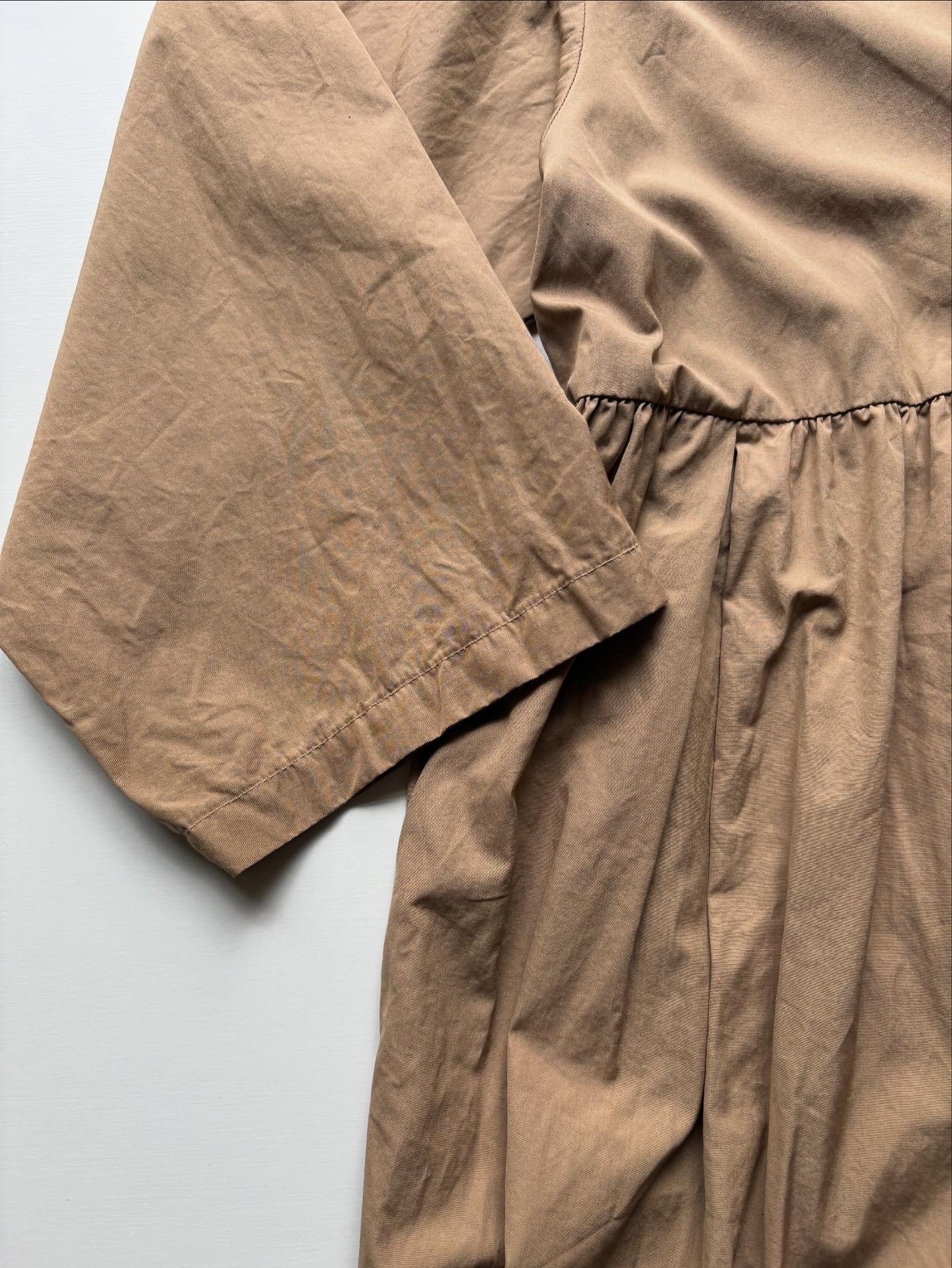 定番のスイッチングギャザーワンピースをパターンを引き直し、より動きやすくデザインされました。