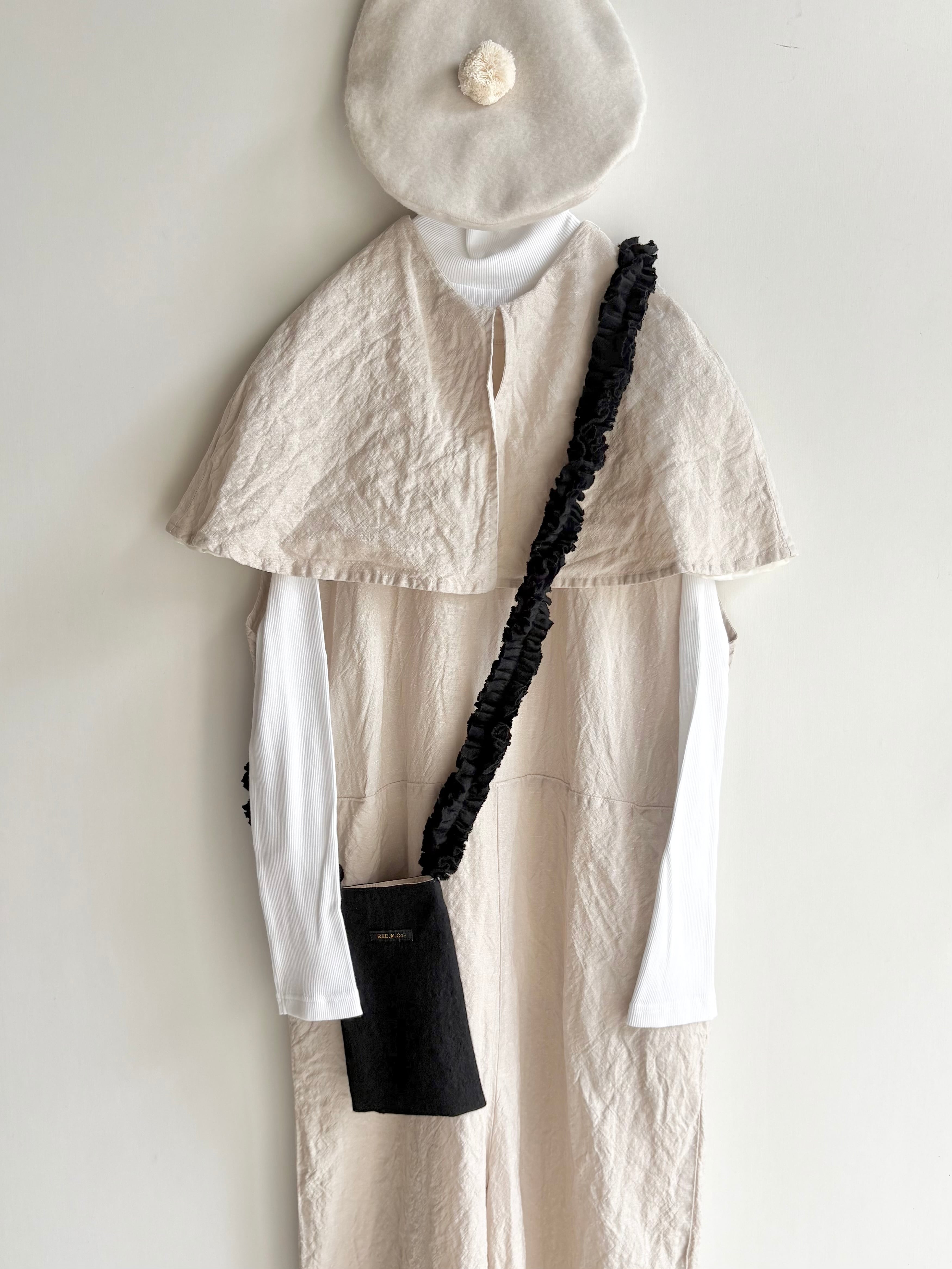 ケープの裏側とパンツ部分の内側には裏地が付いて、薄い色のベージュも透けを気にせず着用いただけます。