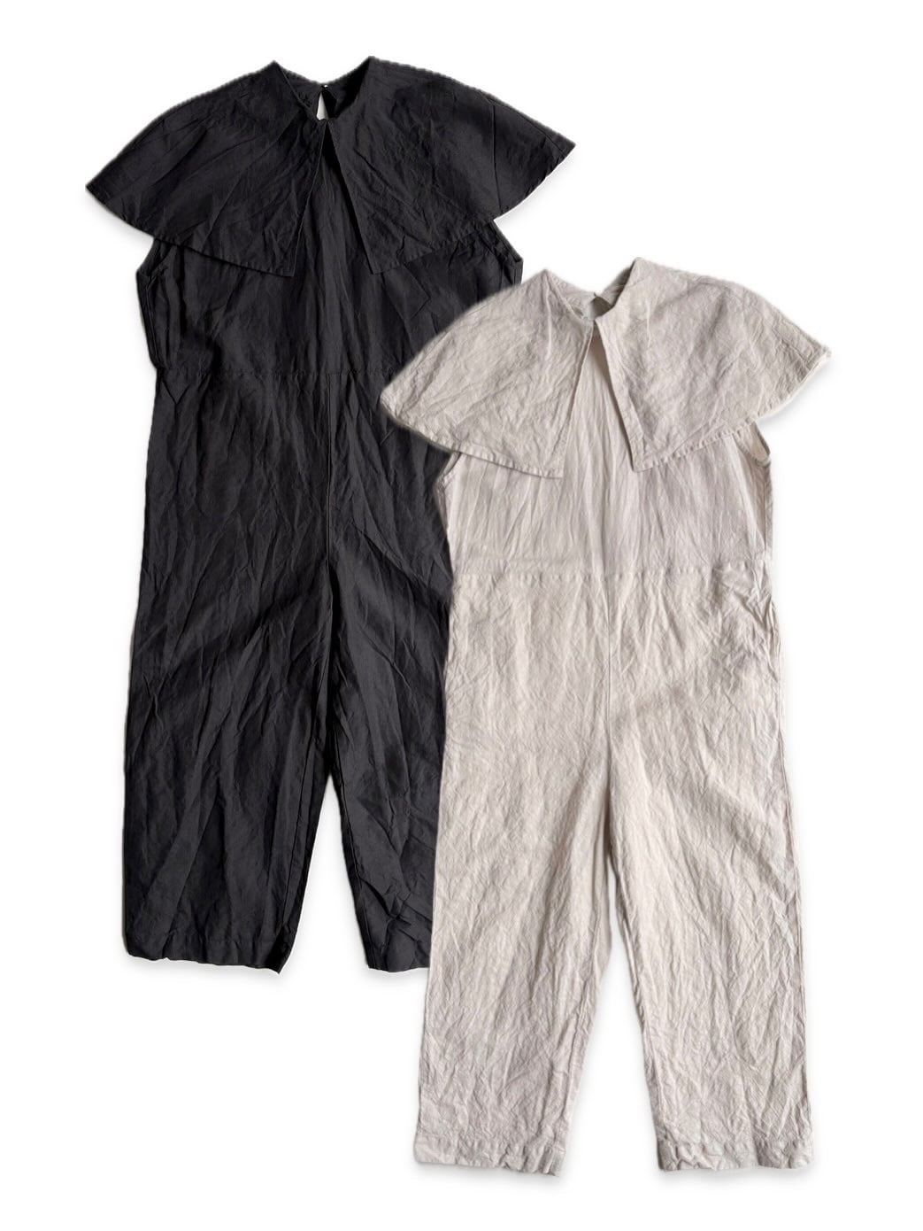 スリーブレスのサロペットにケープをあしらった個性的なデザインで、コーディネートのメインとなりパッと目を引く一枚になってくれます。
