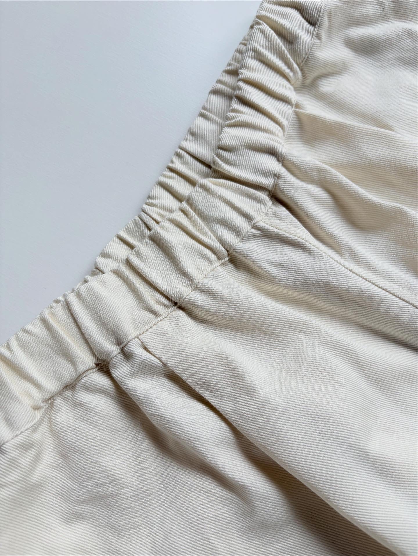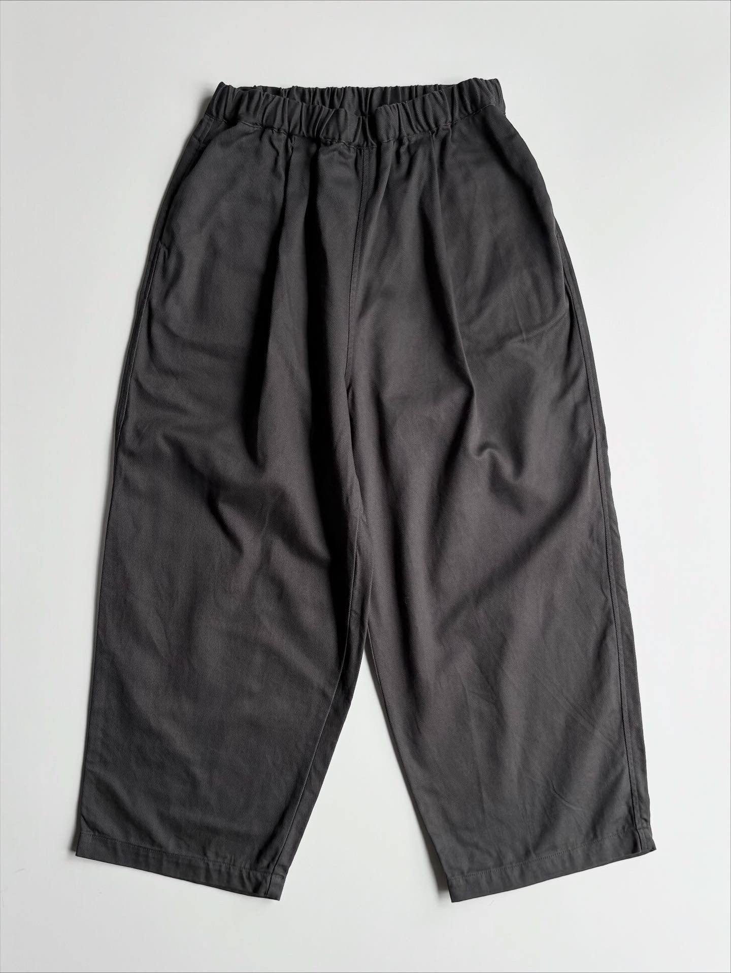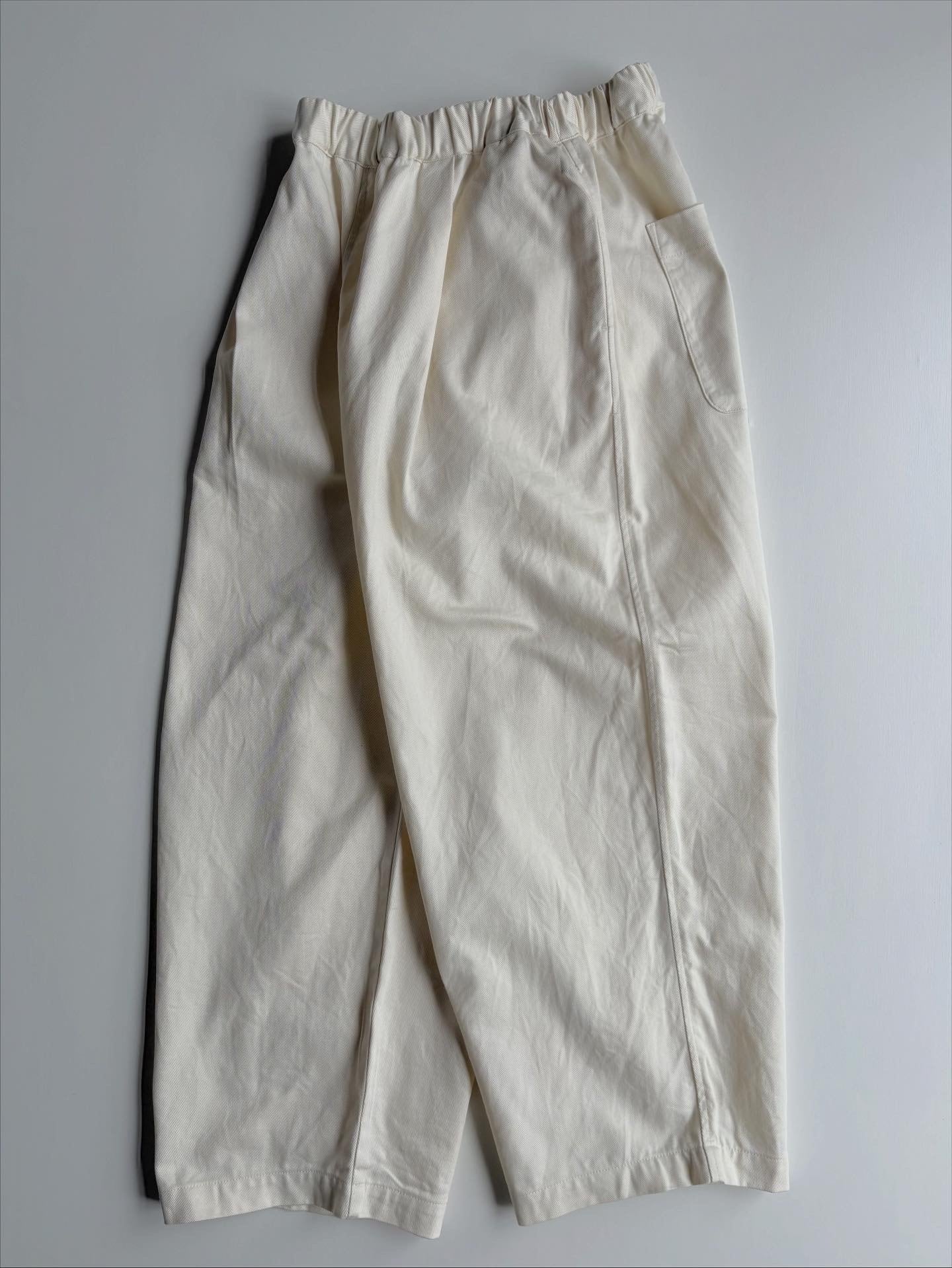 体のラインを拾いにくいゆったりとしたシルエットで、タイトなトップスだけでなくゆとりあるトップスとの相性もよく、着回しのきくパンツです。