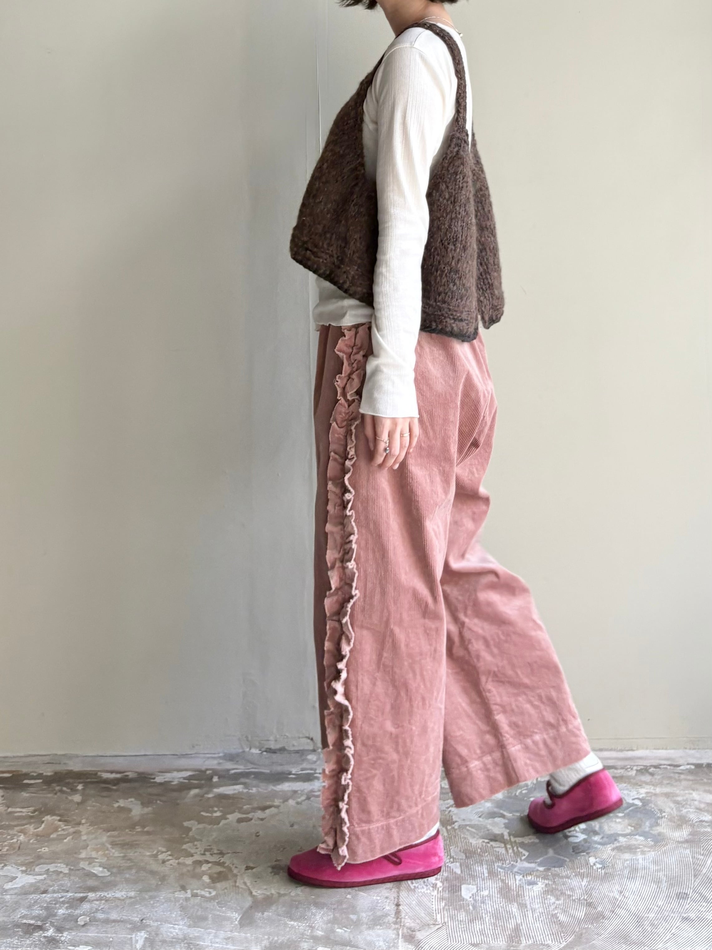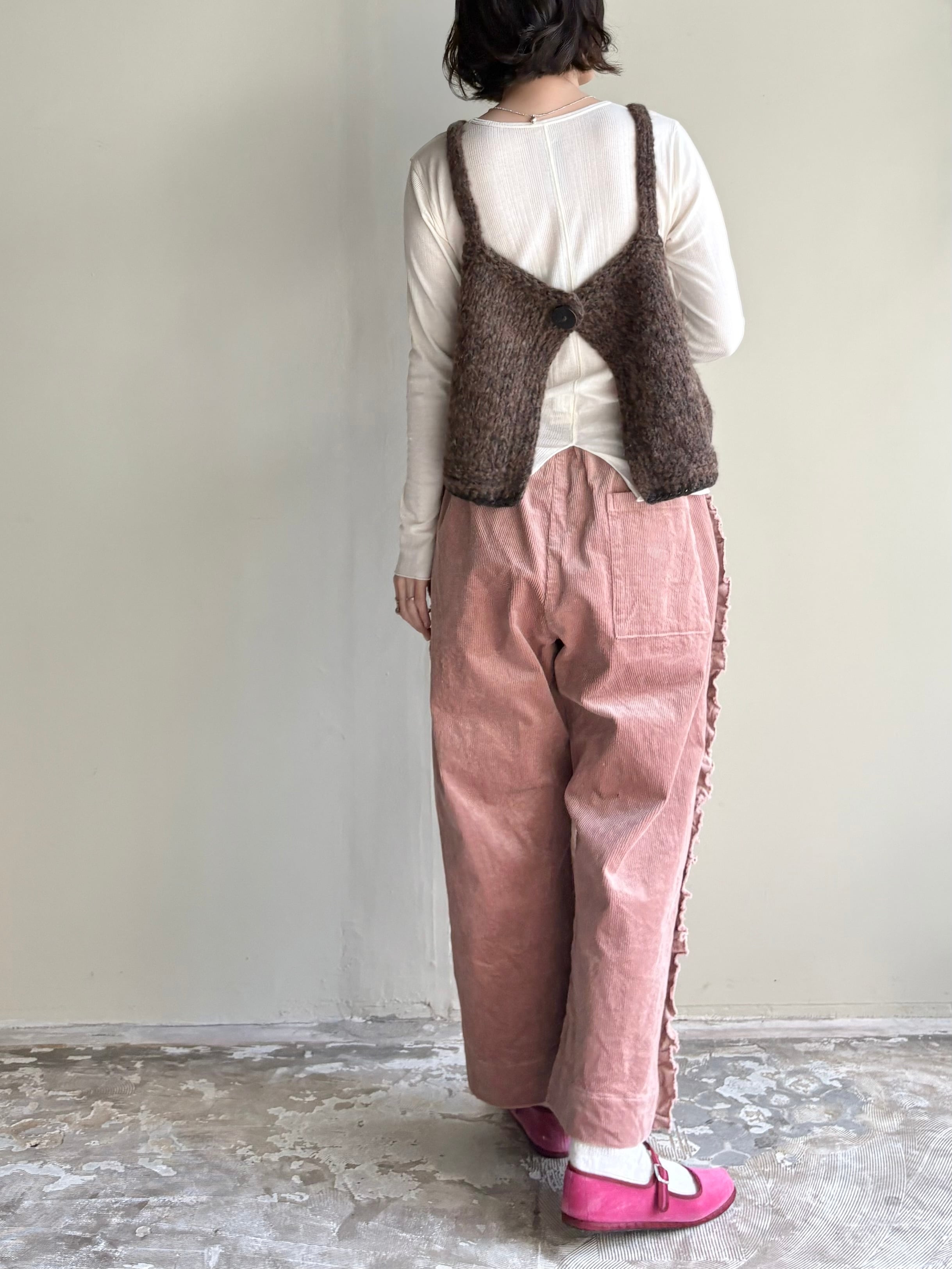 太めの畝で厚みもあり秋冬にあたたかなパンツとして大活躍です。