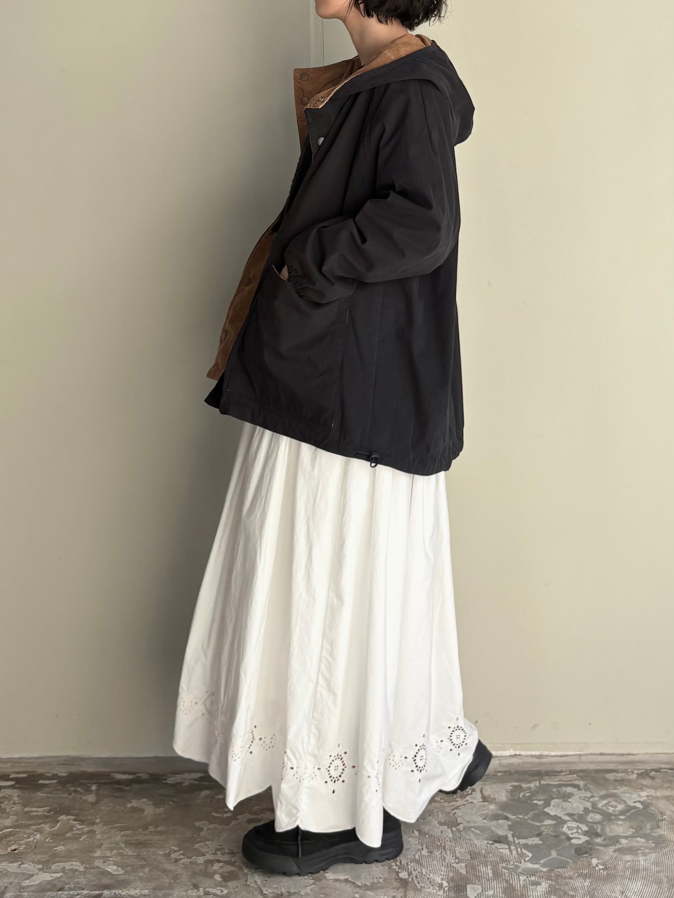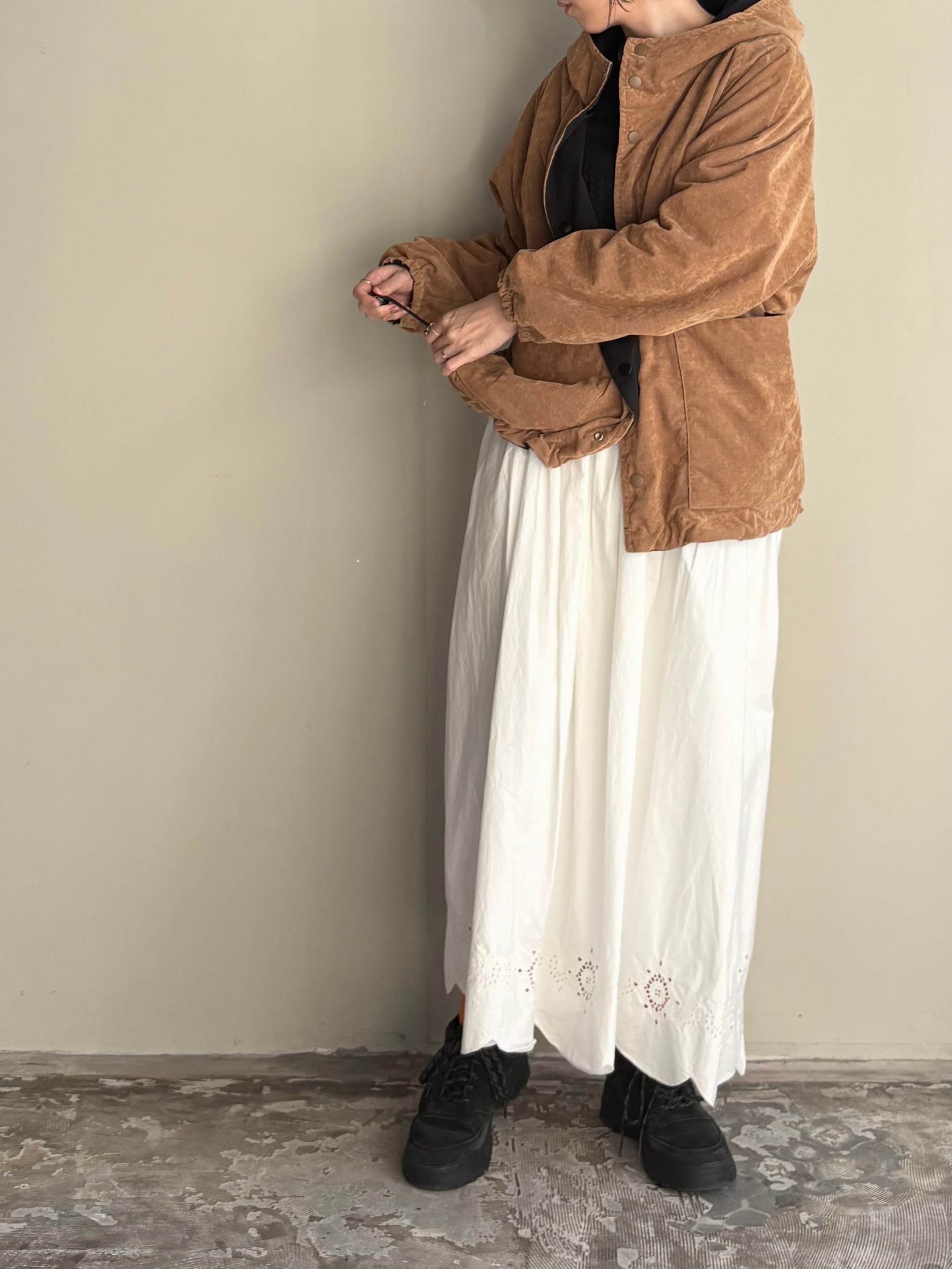 裾にはコードが入り、絞ることでシルエットを変えて楽しむことができ、コーデの幅も広がります。