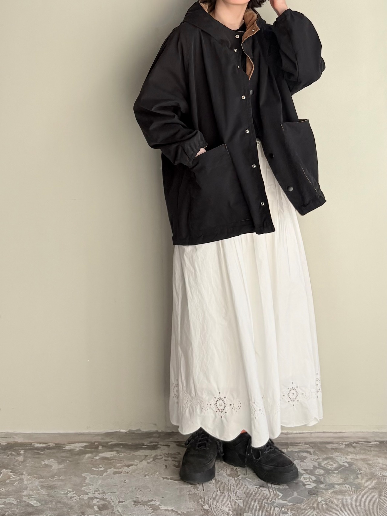 ヴィンテージのアノラックパーカーを再構築し、配色も良いアクセントになった一枚です。