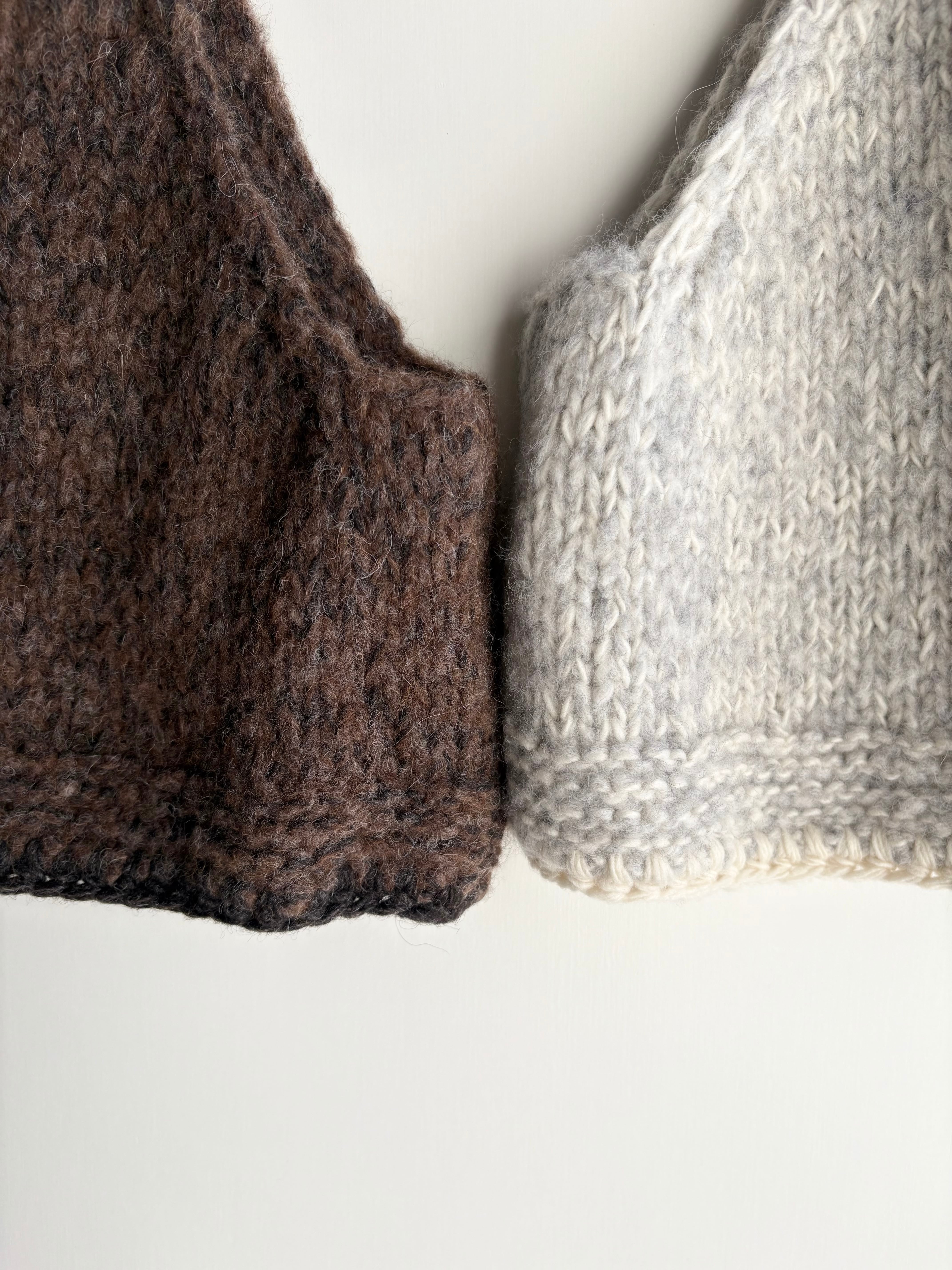 ペルーの羊毛とベビーアルパカ混を使用した手紡ぎ糸を、職人さんの手によって一つ一つ編まれたニットです。
