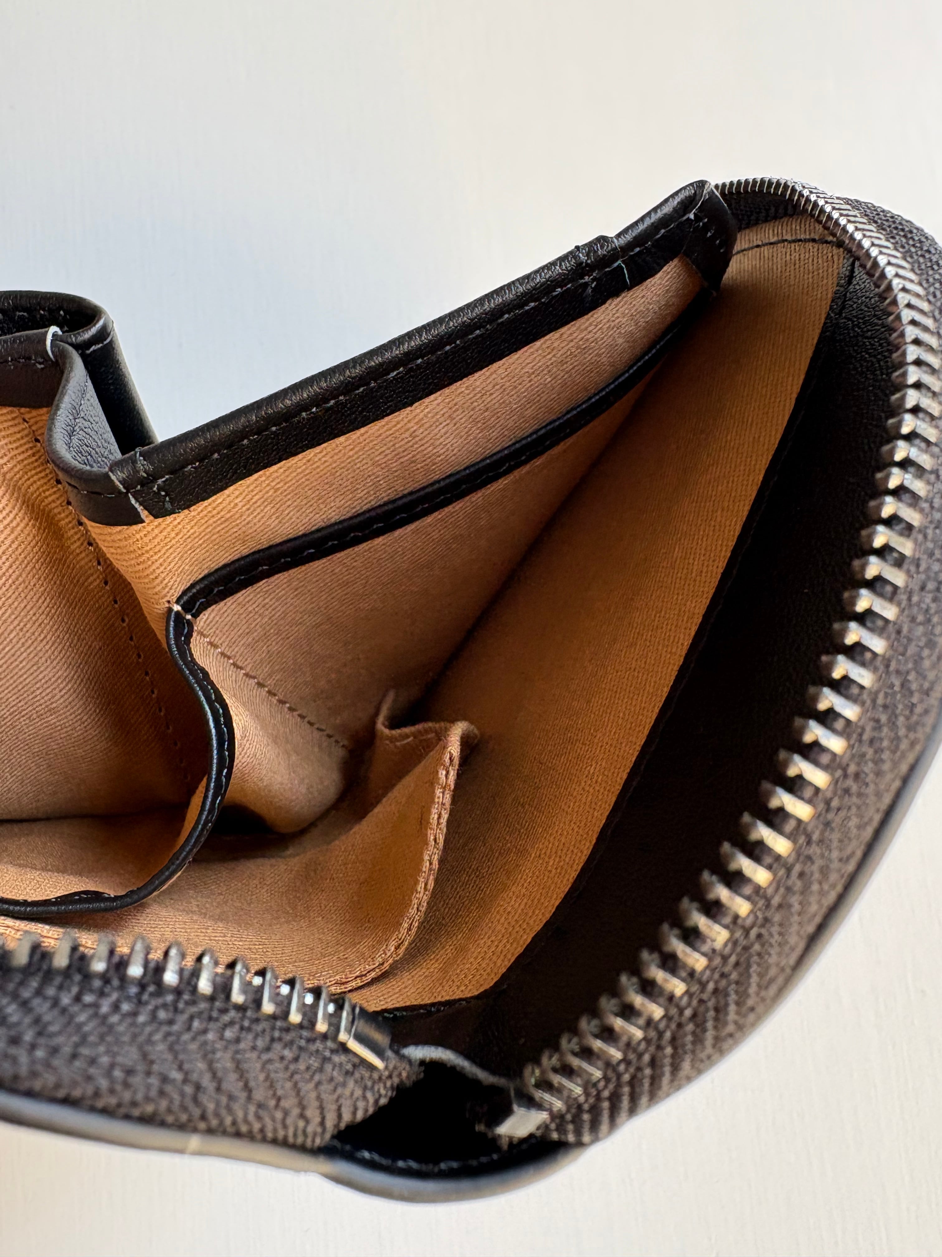 ジップを開けたところと、小銭入れの裏側、お札入れのところにポケットがついていて、小さいながらに機能的なお財布としてデザインされています。
