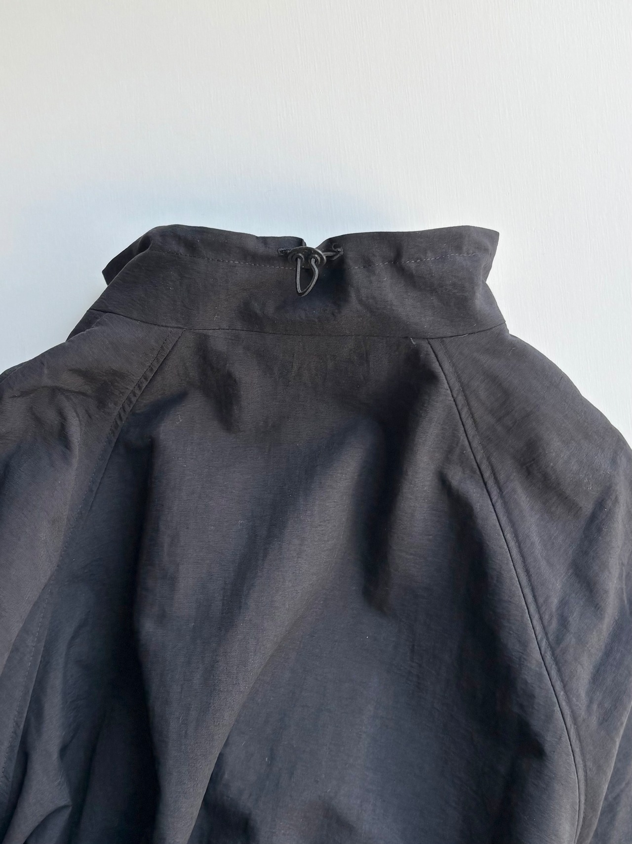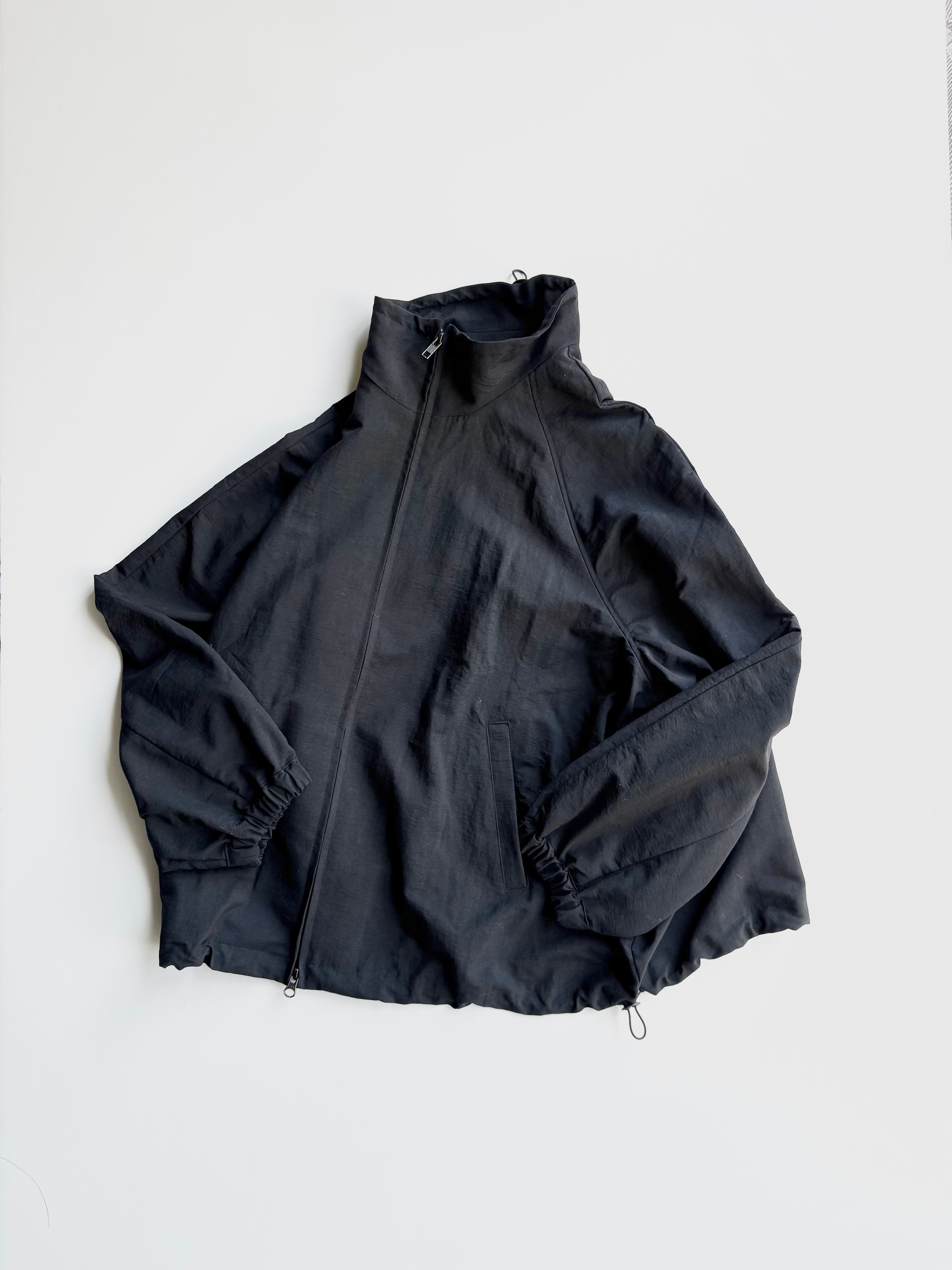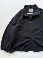 撥水性のある中肉のナイロンファブリックを使用したジップアップブルゾン。