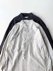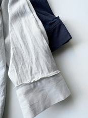 カラーとカフスには切りっぱなしの生地を挟み込みより華やかさをプラスしてくれています。