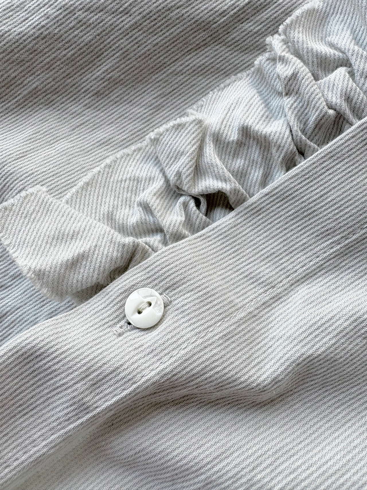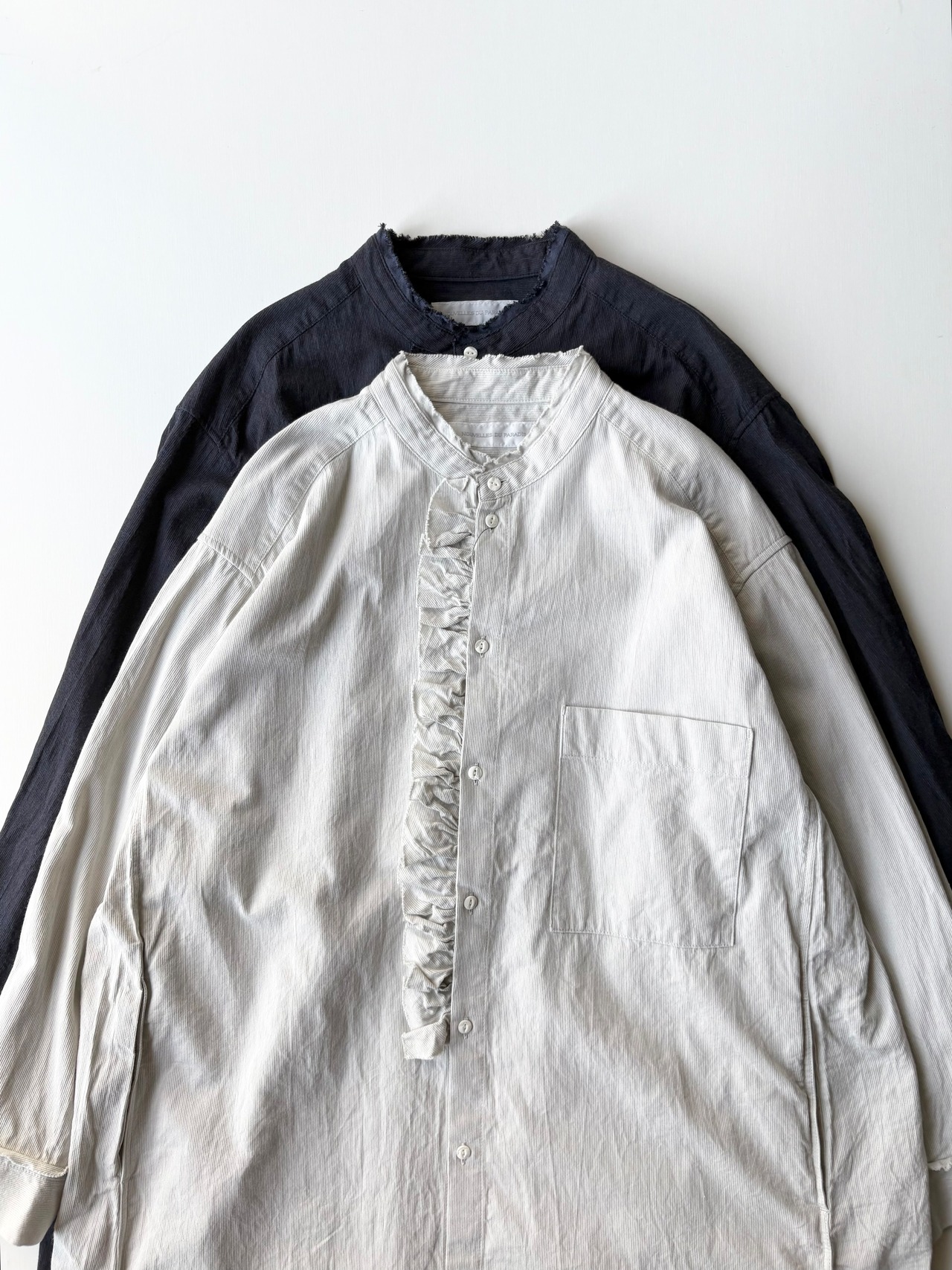 フリルなし、小さなフリル、大きなフリルの3パターンが楽しめ、気分やシーンに合わせてスタイリングを変えることができ、コーディネートの幅を広げてくれる一枚です。