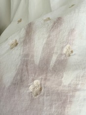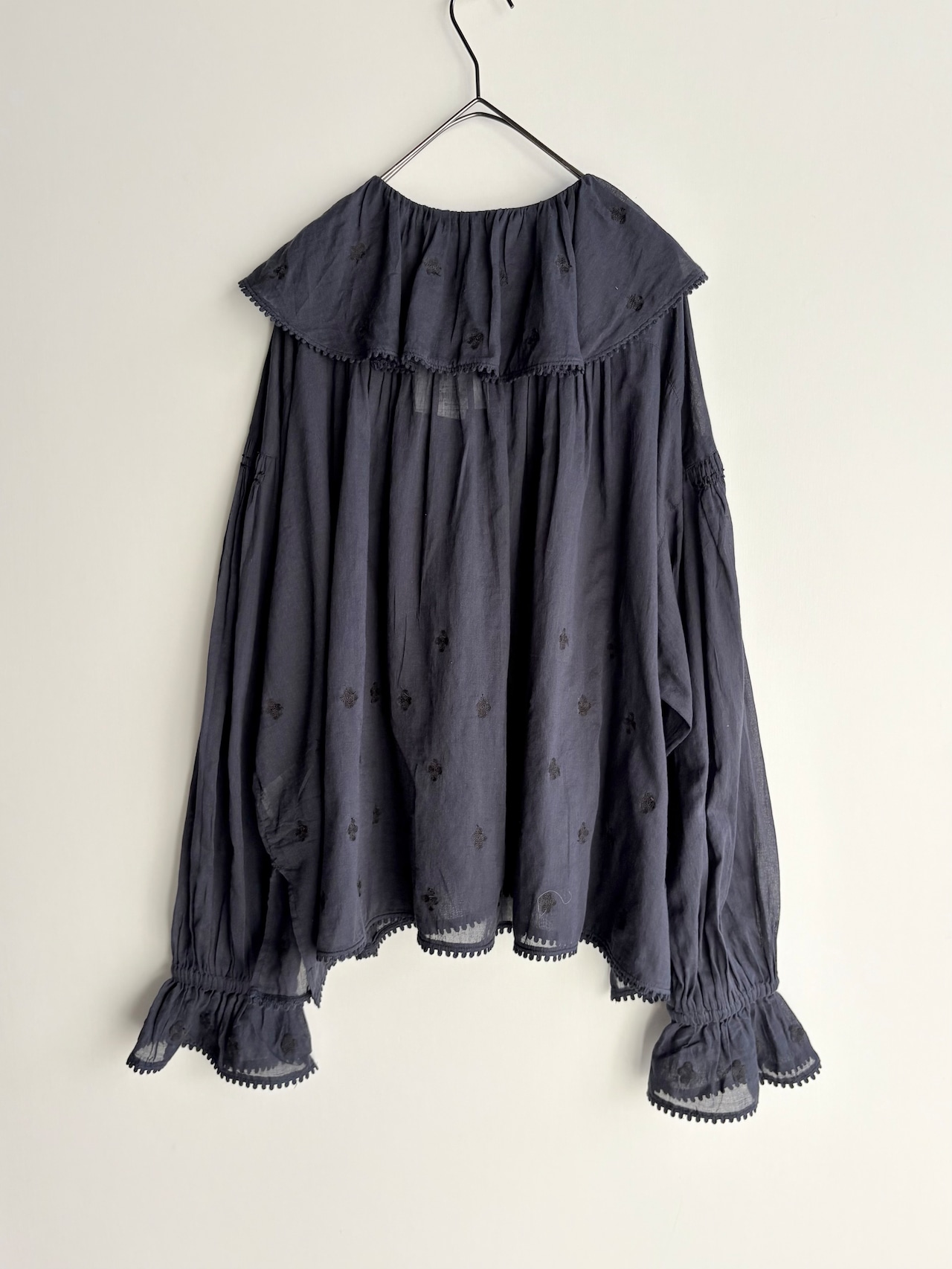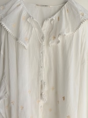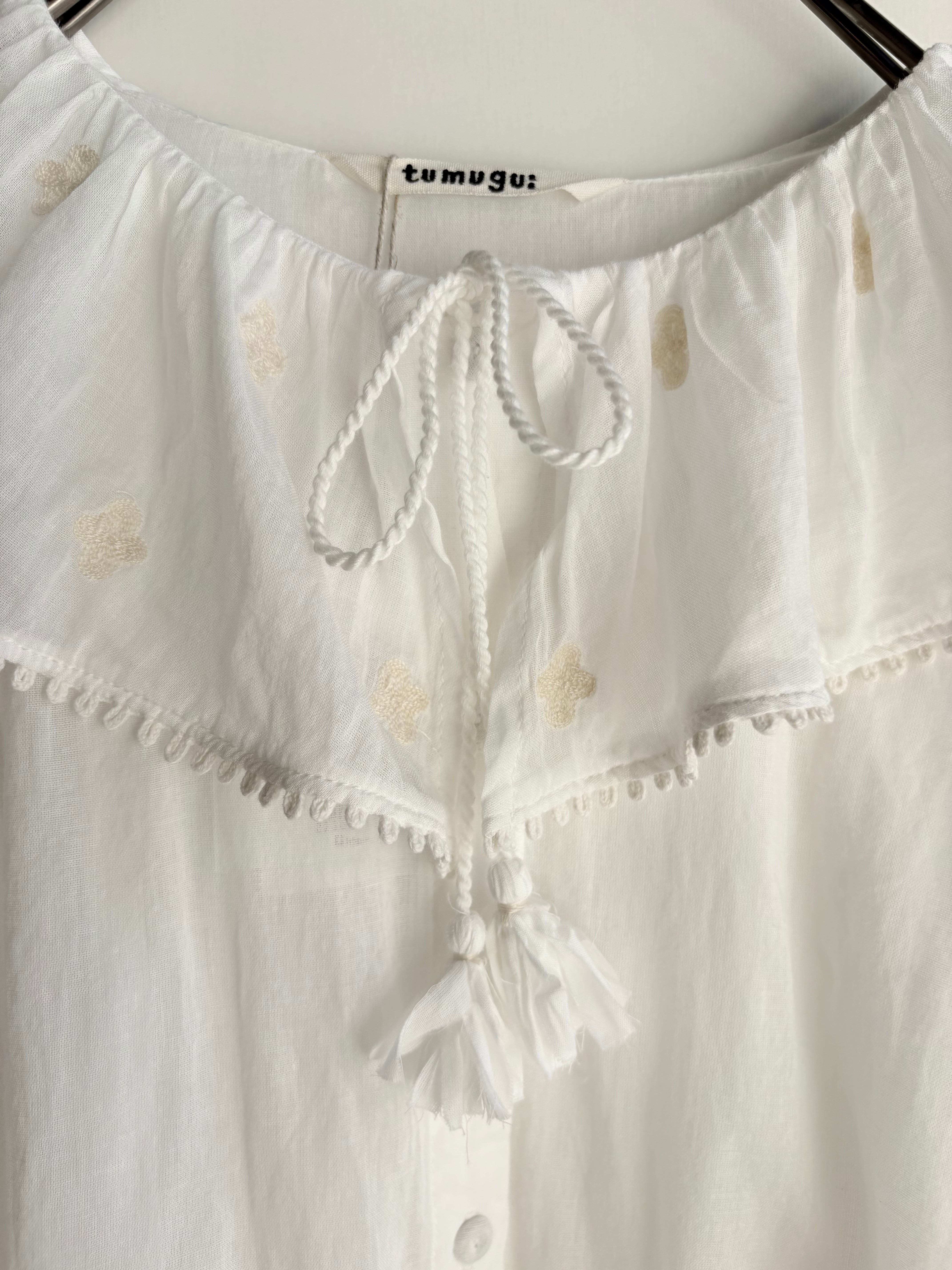 薄くてやわらかなカディコットンにお花の刺繍を施したtumuguオリジナルファブリックで仕立てられたブラウス。