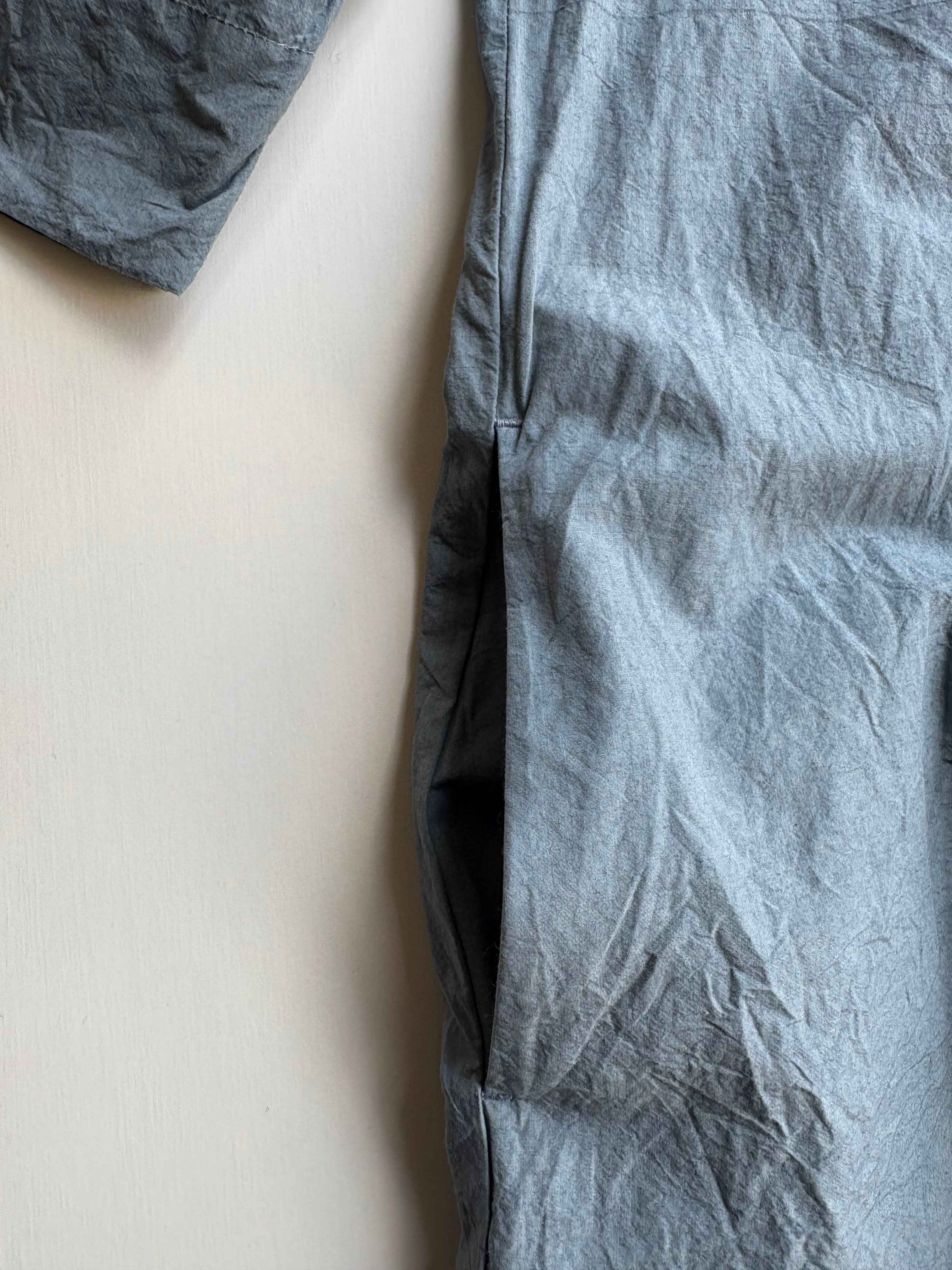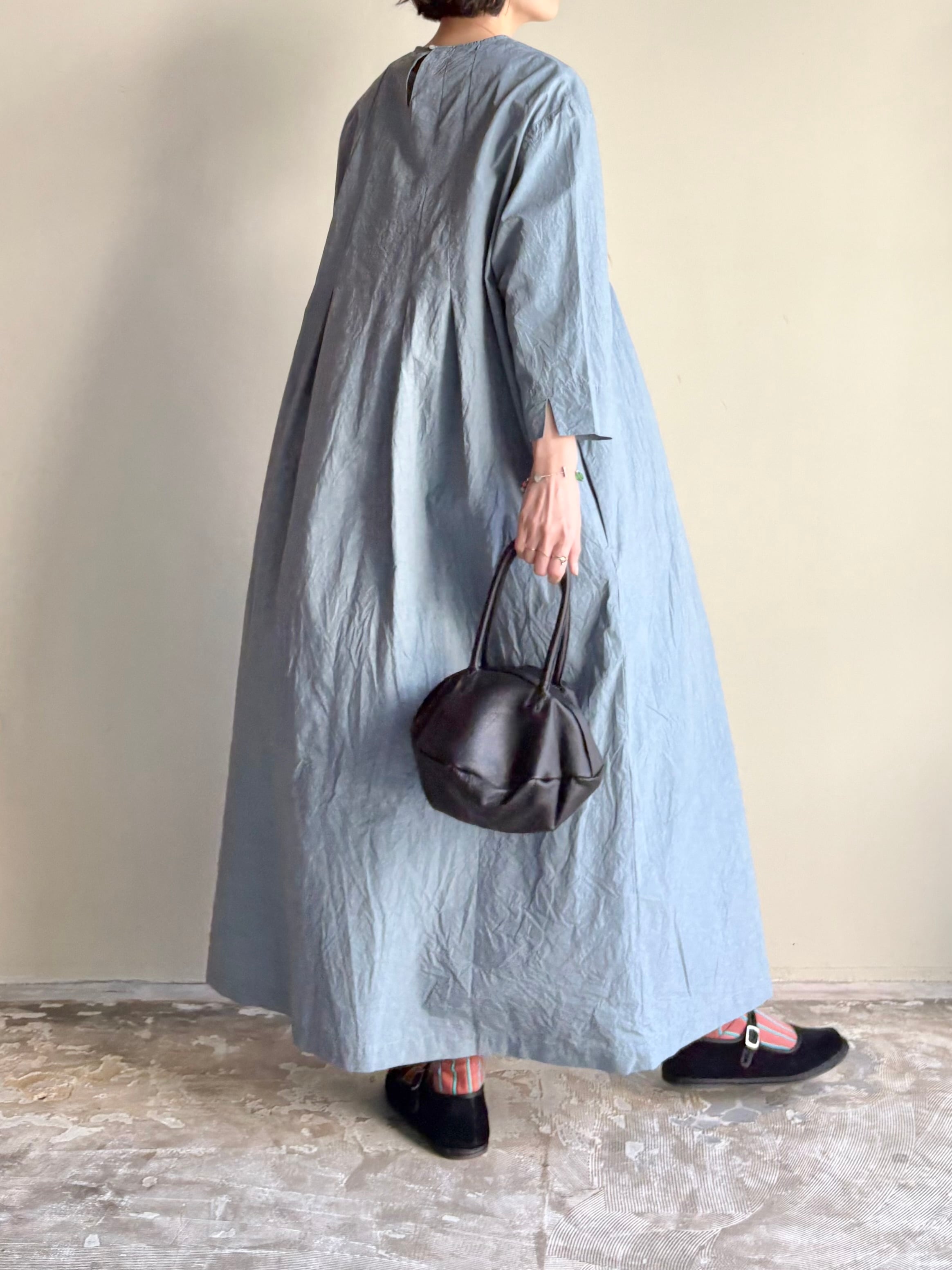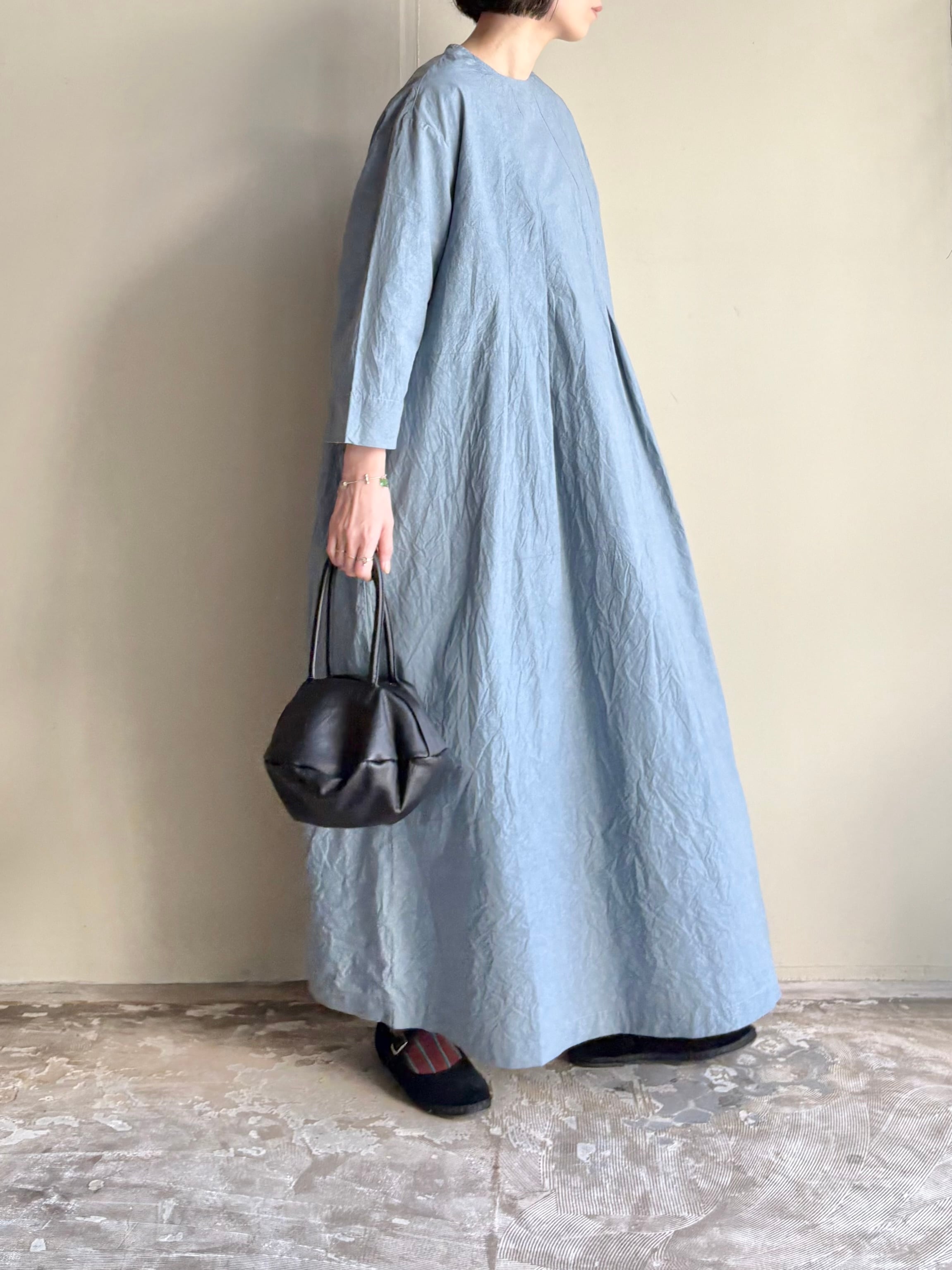 張りのあるコットンリネンの生地で、ムラ感のある染めが奥行きを出し特別感のある素材です。