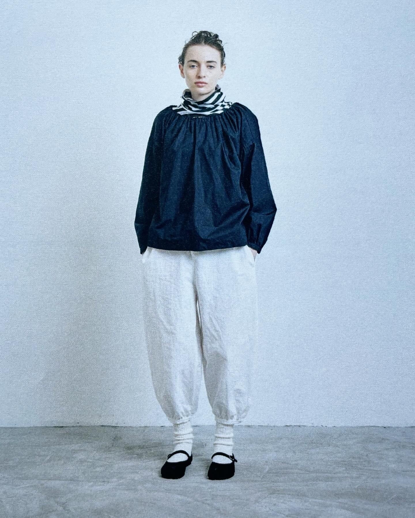 フランスアンティークのスモックブラウスを今の時代に合うようにモディファイされた一枚。