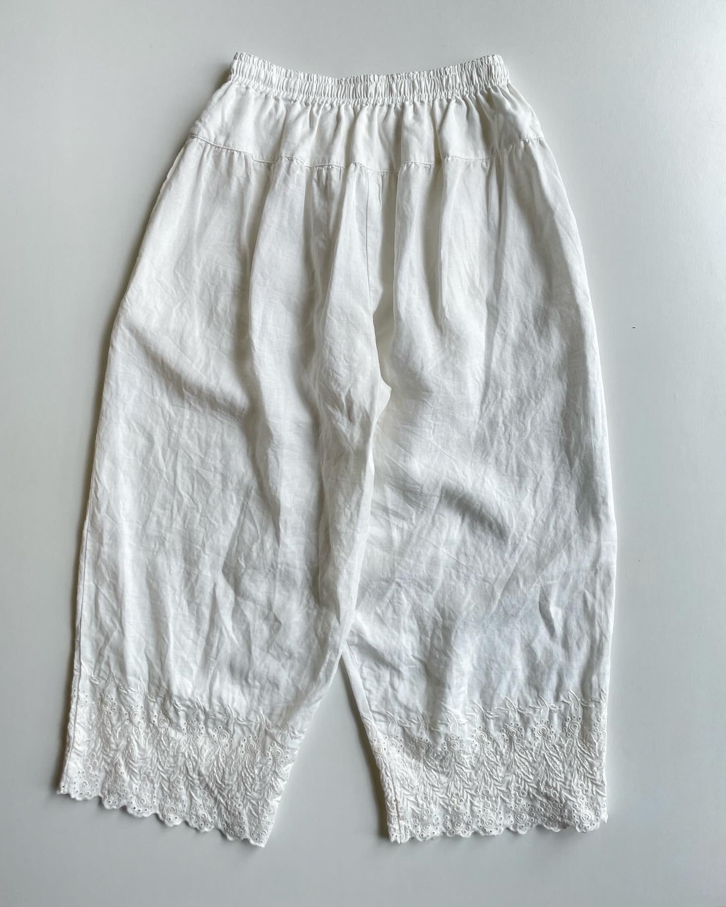 アンティークレースをリネン素材で表現した贅沢なパンツ。