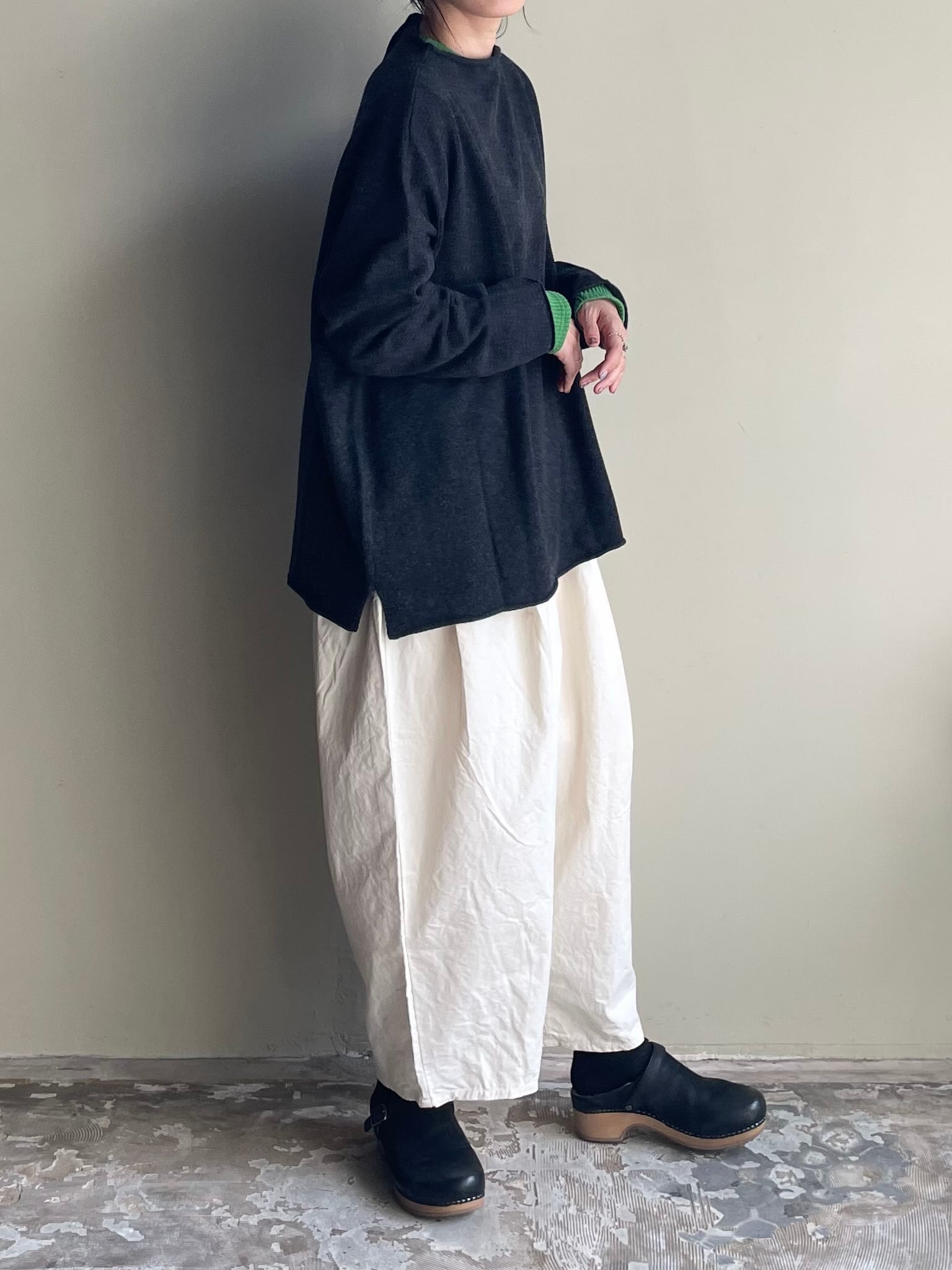 タイトなトップスもゆったりトップスも、長めの羽織りと合わせても、どんなスタイリングもバッチリ決まるパンツです☺︎